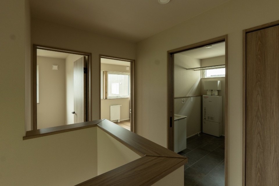 洗面、脱衣所、浴室を2階に配置することで、入浴から夜寝るまでの時間がワンフロアで事足ります。