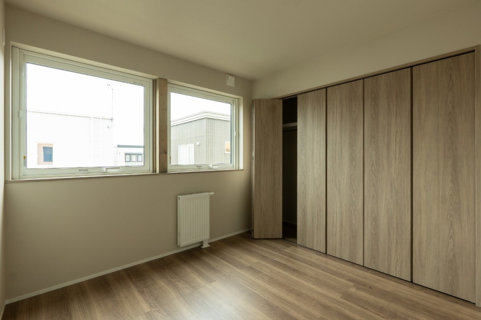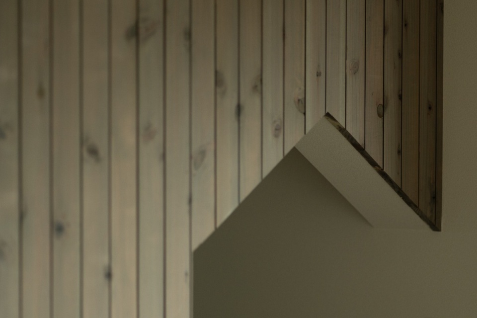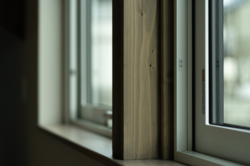 窓と窓のあいだの構造柱をあえて木のまま見せています。小さな工夫ですが、こんなところにも木の温もりが感じられます。