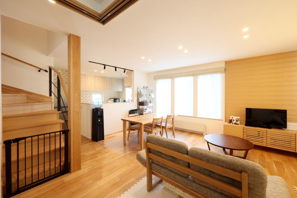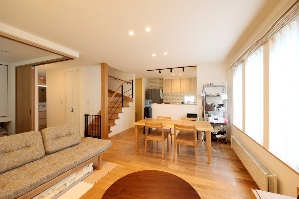 旭川市のOさんは、ご夫婦と小さなお子さん2人で暮らす4人家族です。2024年4月に完成した新居は、自社製材の建材を使い、木の温もりあふれる家づくりで人気の昭和木材に依頼しました。