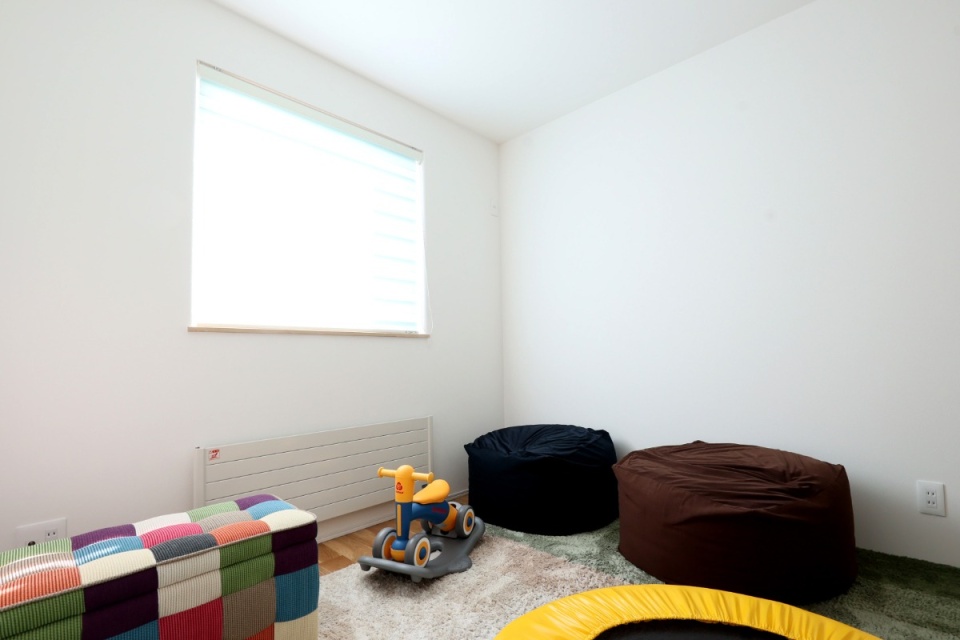 柱がなく、視界を遮らない客室は、ご夫婦ともにお気に入りのポイントです。遊んでいる子どもの様子にも目が届き、来客時には客室としても使えます。