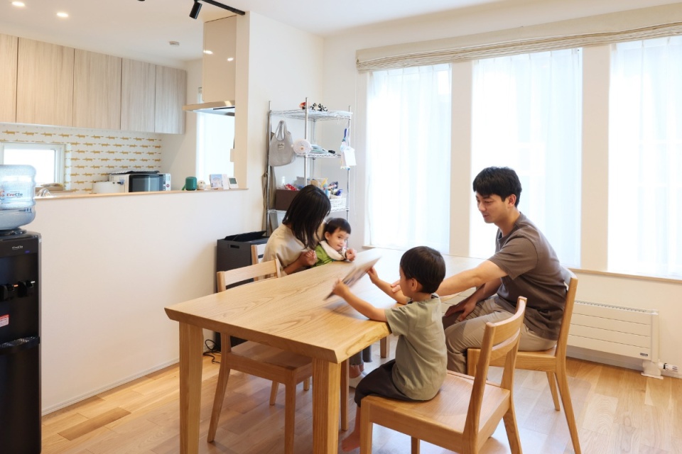 「期待以上の仕上がり」と話すご夫婦や、上の息子さんが林さんにすっかり懐いている様子からも、オーナー家族に寄り添い丁寧な打ち合わせを重ねた家づくりであったことがうかがえます。