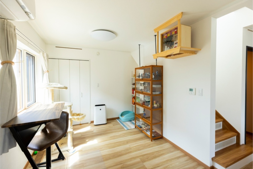 LDKの続き間として6畳の洋室もあり、こちらは愛猫のくつろぐ場所やご主人のコレクションを飾るスペースとして使っています。