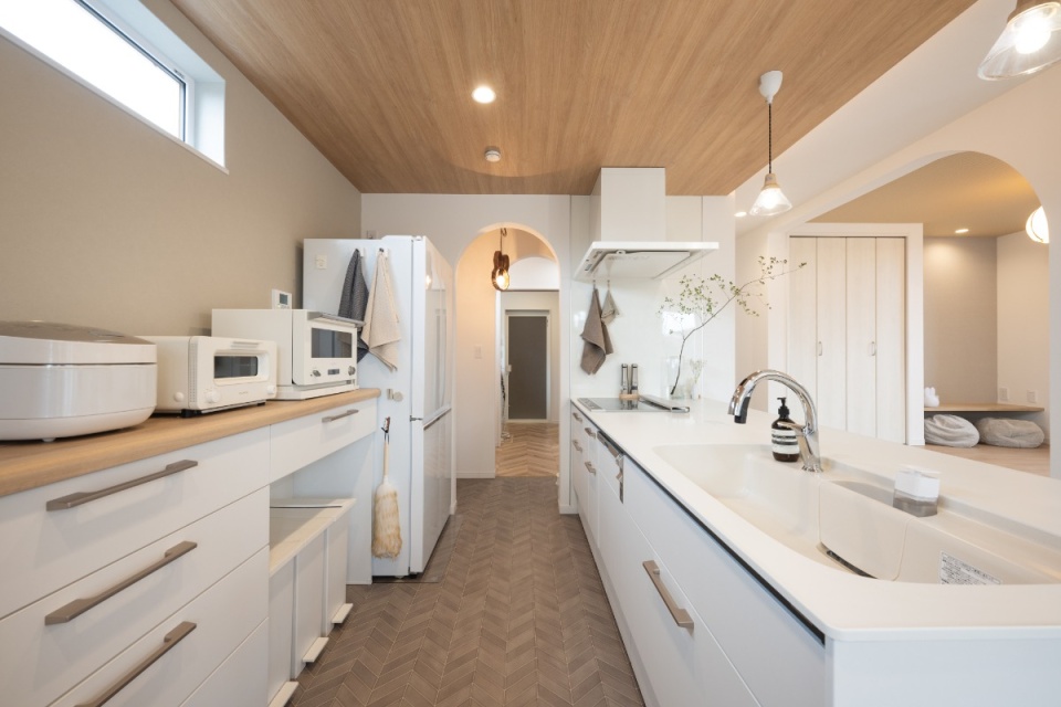 イネスホームさんの家づくりは自由度が高いところがよかったです。いちばんやりたかったのはアーチです。丸い形がかわいくて、採り入れたい場所はすべてアーチにしてもらいました。