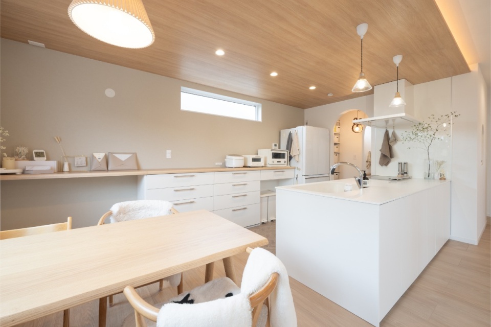 どこかに下がり天井を採り入れられたらいいなと思い、キッチンを下がり天井にして間接照明にしてもらいました。