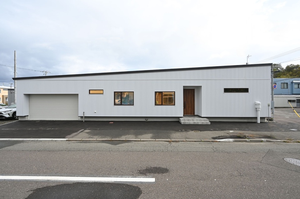 水平に伸びやかなフォルムを見せるシンプルな外観デザインや、LDKと水回りを回遊できる機能的でお洒落な室内空間―。オホーツク・網走市内に建つこちらの住宅は、キャリアチェンジやお子さんの誕生などライフステージの変化を機に、使い勝手が良く暖かい家で暮らしたいという想いや、大切にしている車とオートバイをいつまでもいい状態のまま所有したいという、オーナー・中嶋さん一家の想いがカタチになったマイホームです。