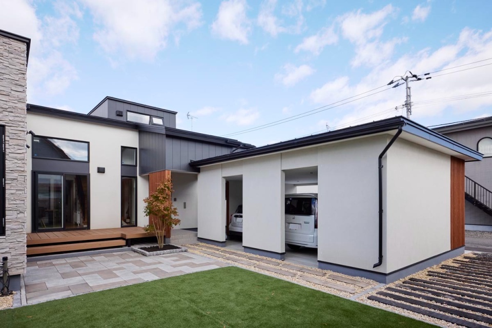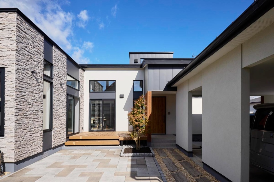 帯広市の中心部に近い住宅街に建つO邸にはご夫婦と3人のお子さんが暮らしています。家の中心は家族や友人とのコミュニケーションの場として設計された「中庭」。ガレージ・エクステリアも含め、帯広市のクリプトン(竹市真巳社長)によって設計・施工された美しい一棟をご紹介します。