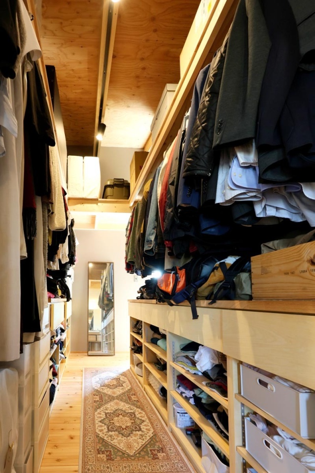 ユーティリティの向かいは衣類を収納できるウォークインクローゼットにしました。おかげで乾かして畳んだ衣類を数歩でしまえる快適な間取りです。