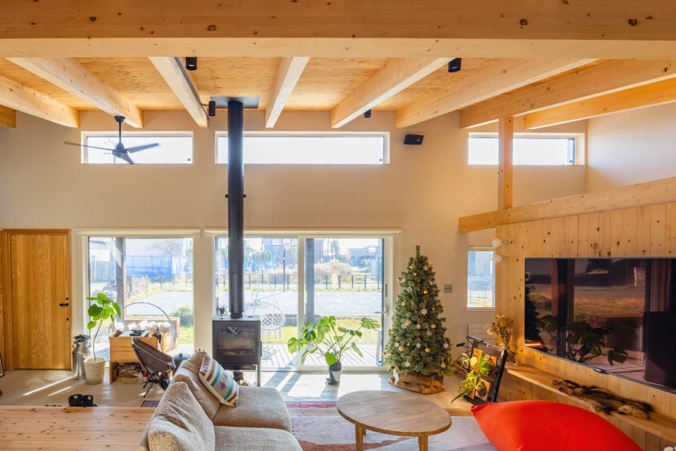 土地が決まってすぐ住宅展示場を回りましたが、惹かれる会社がなく、見すぎて疲れてしまって(笑)。木を使いながら間取りも自由に作れる家がいいなと思っていました。そんなときSNSで丸三ホクシン建設さんを知り、オープンハウスの見学に足を運んだら、あ、これだ!と思ったんです。木の現し天井に憧れもありました。