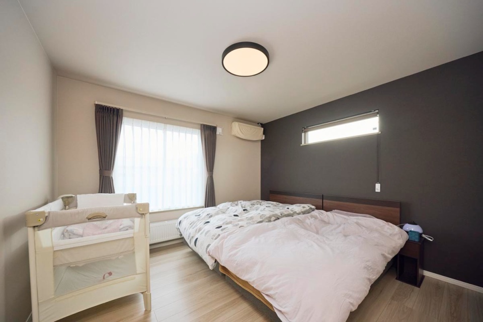 寝室はLDKの隣に配置しました。「生涯にわたって不自由なく暮らせるようにしたかったんです。一階だけで日常生活が完結する間取りは動線がシンプルなのもいいですね」