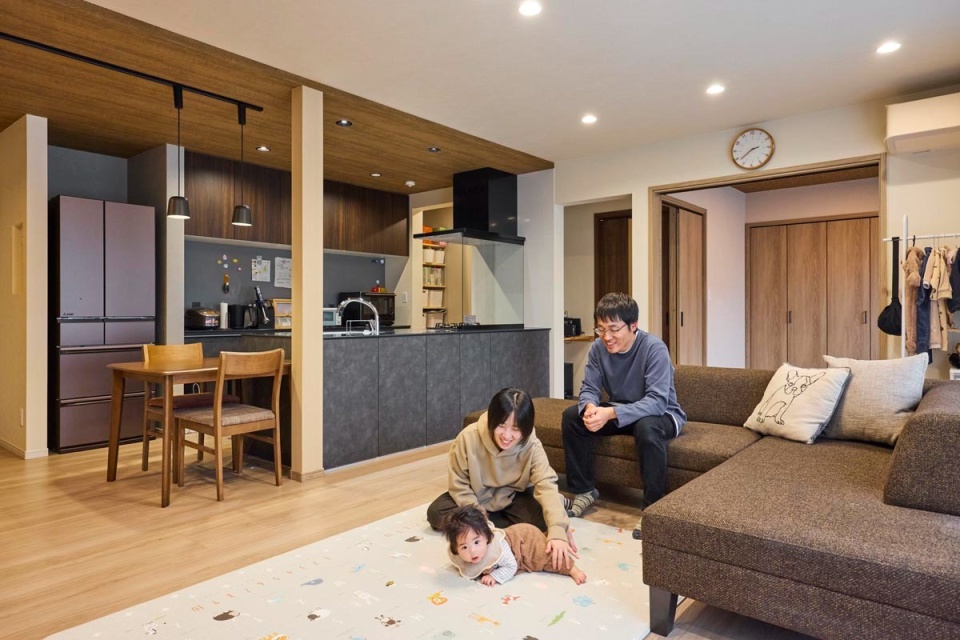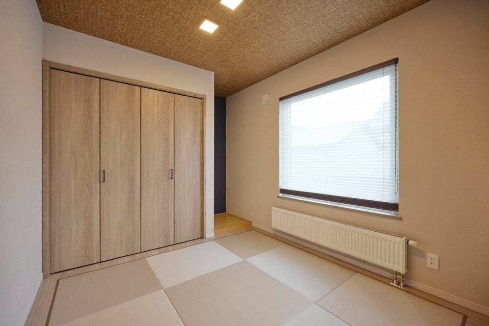 LDKの一角には和室を設けました。「和室はないと寂しいかなと思って造りました。将来的に仏壇を置くスペースを確保したかったということもあります。収納に関しては、特にこちらから要望をださなくても赤坂さんが様々な形で提案してくれたので助かりました」