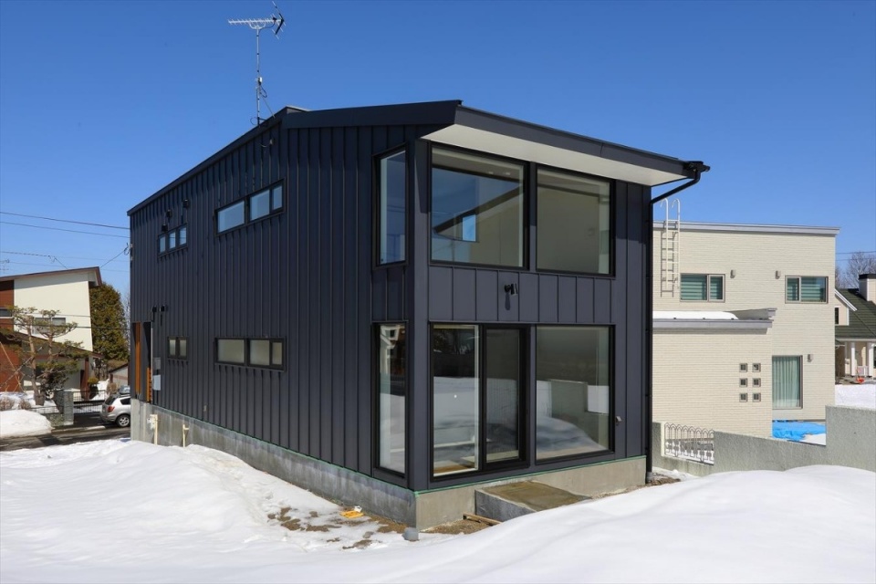 もともと北向きの間口から奥まで2メートルの高低差のある変形土地。細長い家になるのは分かっていました。
