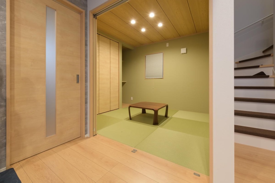 そしてもう1部屋、ギターが趣味のご主人のための防音室があります。そこはまわりを気にせずに音楽に没頭できる空間。部屋が密閉状態になっても快適さを損なわぬよう、温度調節エアコンを設置しています。