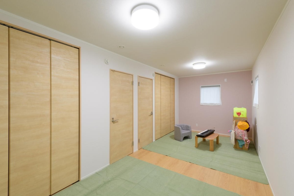 2階はウォークインクローゼットを備えた主寝室に加え、仕切りを付けられる子ども部屋があります。こちらは子ども部屋。