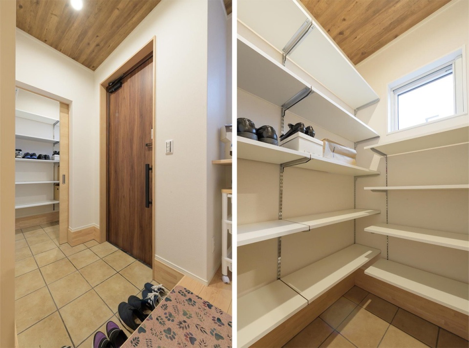 玄関には土間続きに収納力バツグンのシューズクロークがあります。