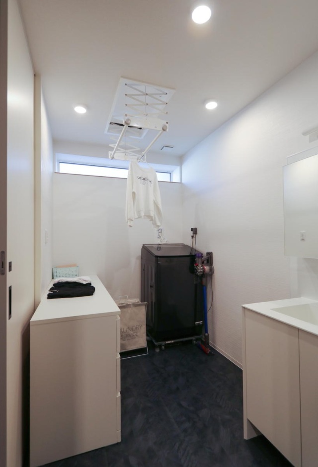 ユーティリティは、洗濯してそのまま干す、乾いたらチェストの上でたたんでしまう、というすべての作業が完結する家事ラクプラン。