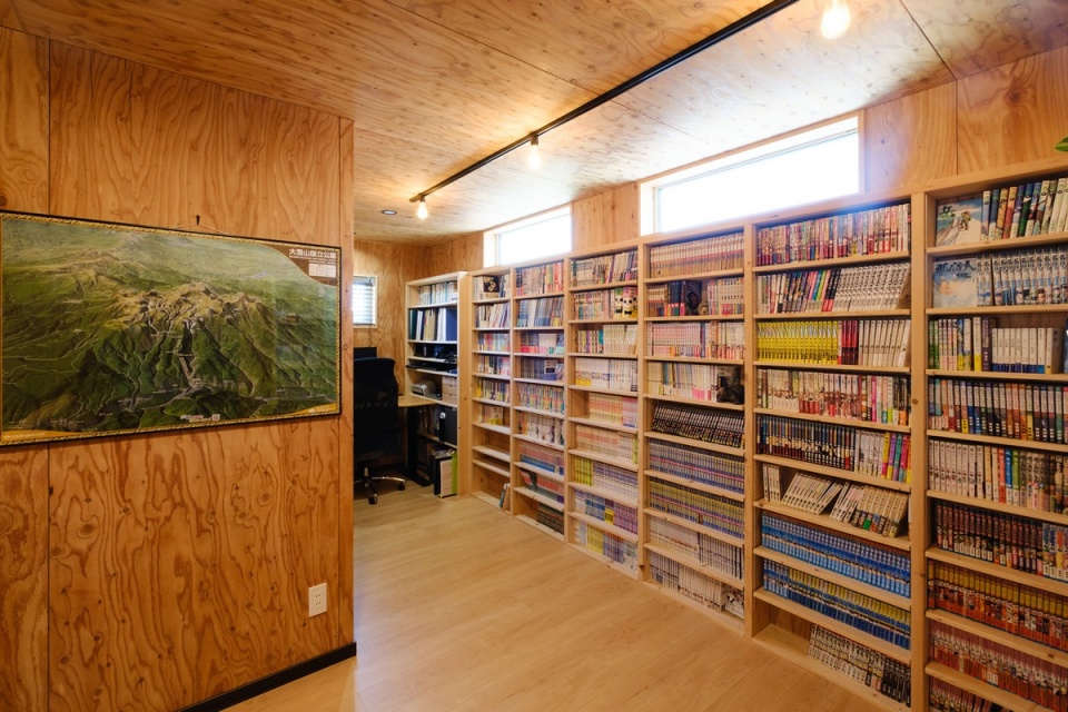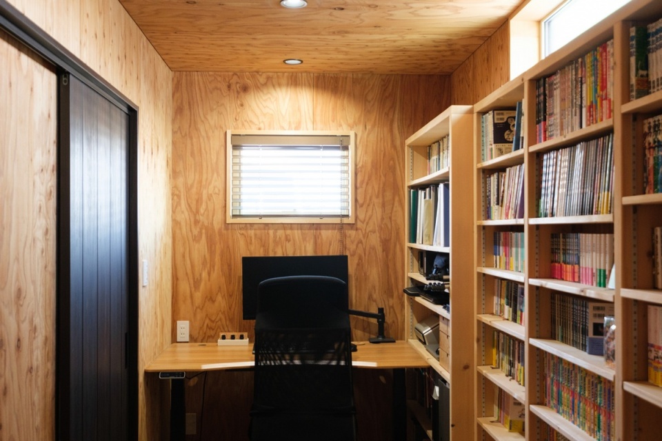 ブックスペースの奥はご主人の書斎になっています。左の扉は、主寝室に通じる4.5帖のウォークインクローゼットです。