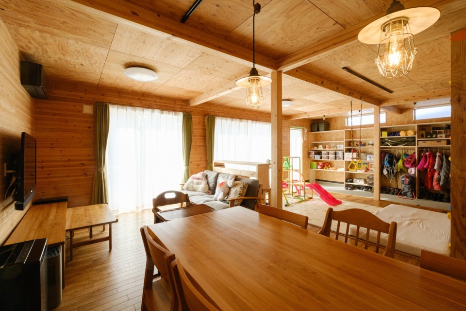 奥さま 山小屋風を希望したのは、たくさんの人を招ける「誰でもウェルカム」な家をつくりたかったからです。完成した我が家を見て、友人からは「子育てサロンみたいだね」と言われるのですが、まさにそんなイメージで設計してもらいました。