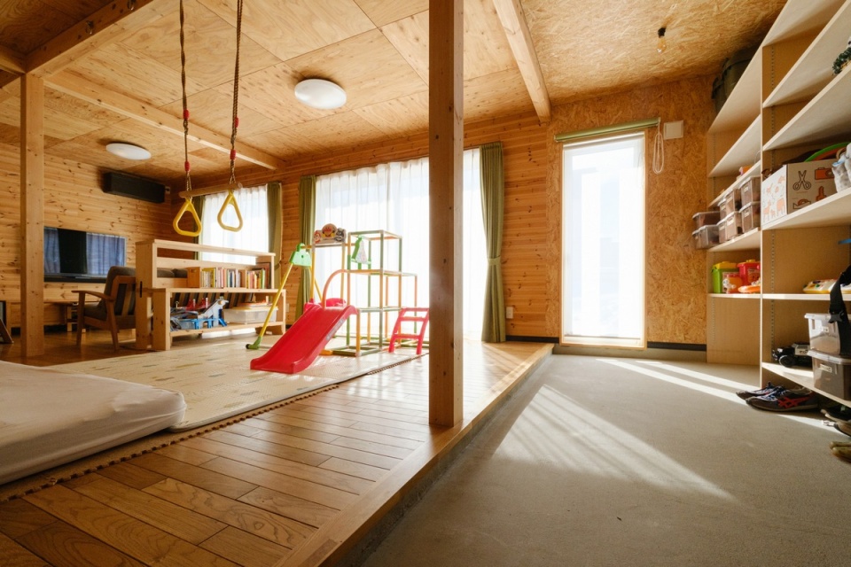 梁を利用しブランコも設置。雪に閉ざされる季節でも、子どもたちが体を動かして遊べる環境です。