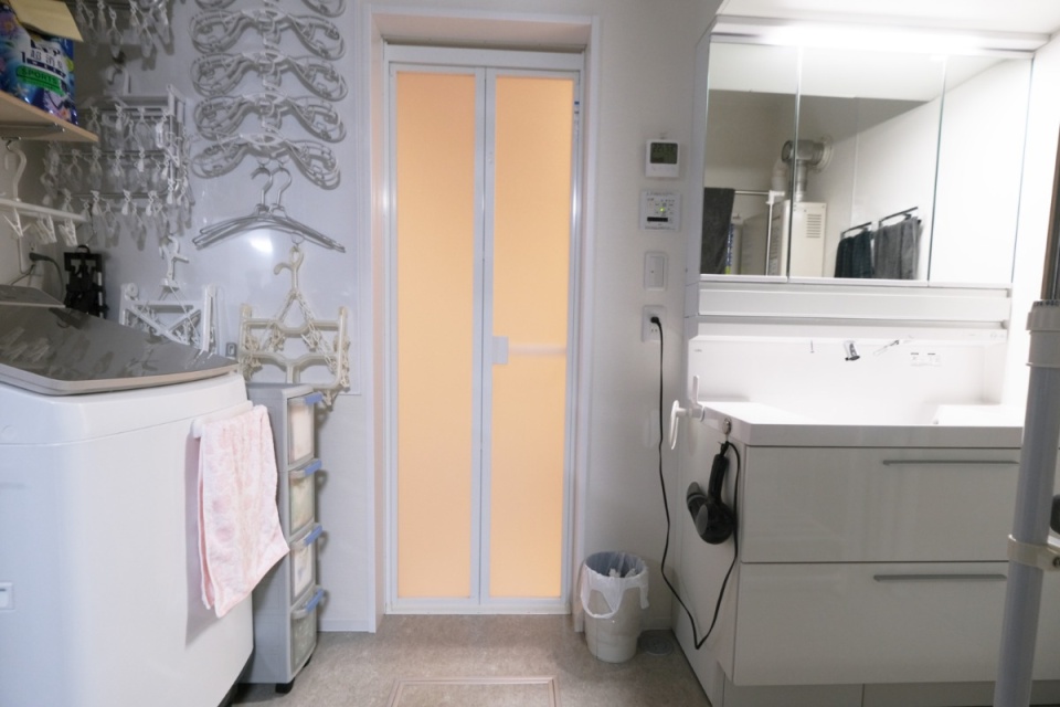 タイル貼りのお風呂はユニットバスの一坪タイプに変更。足を伸ばして入浴したいというご主人の要望を叶えました。洗面台は、奥さまがつけ置き洗いをするため、大きめの洗面ボウルがあったリクシルの製品を採用しました。