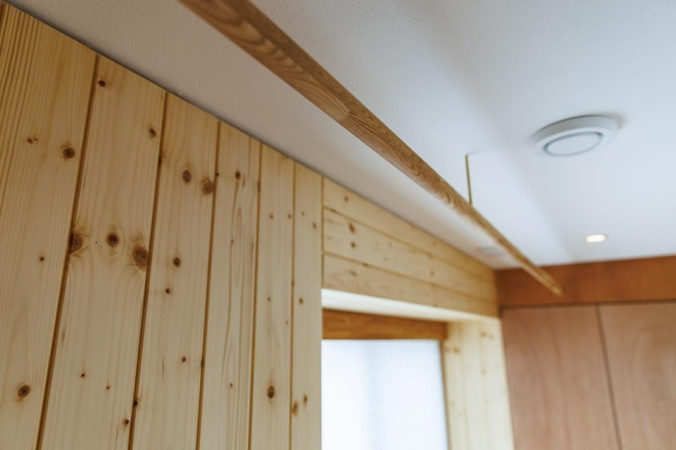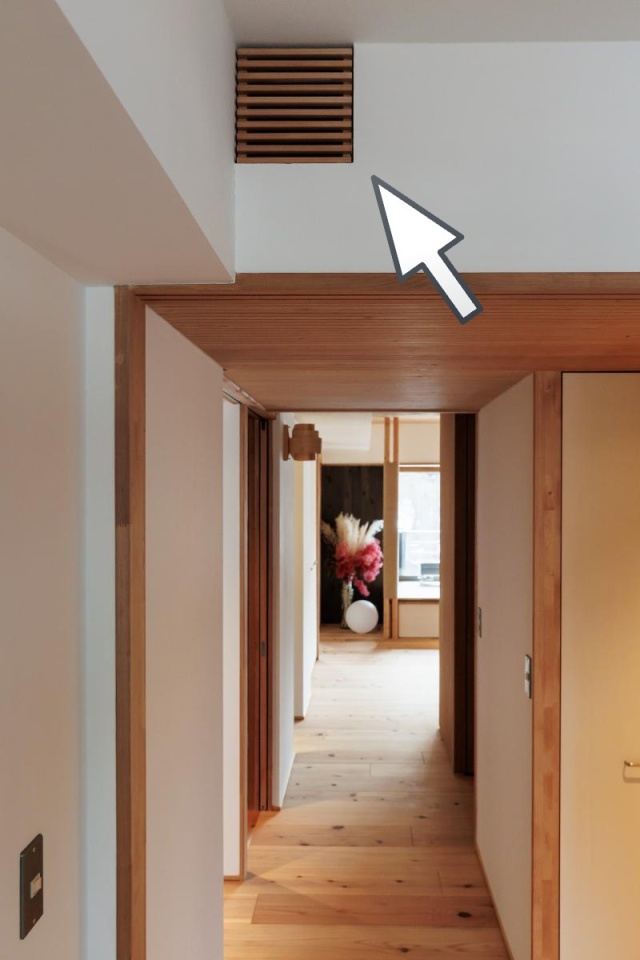 また、全室にエアコンの設置が難しいことから、天井裏に設置したダクト式エアコンで家全体の空調を行う全館空調を採用しました。