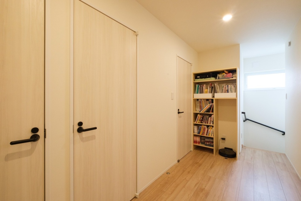 2階はフリースペースを囲んで4つの洋室と書斎を配しています。