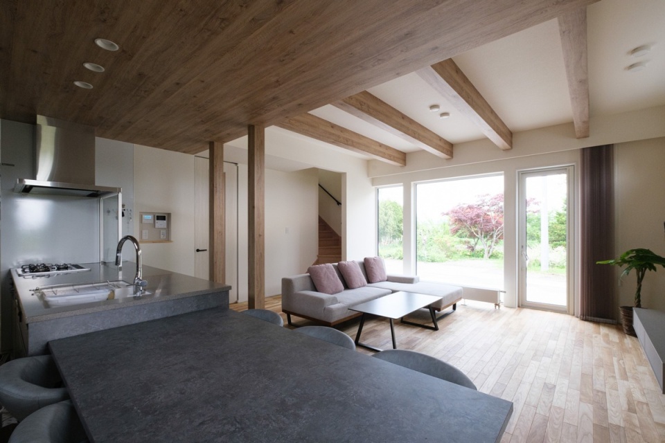 晃和住宅は、お客さまのデザインやプラン、仕様などの要望にしっかりと向き合い、プロの技術で理想の住まいづくりを続けています。江別市で農業を営むIさん夫妻が晃和住宅への依頼を決めたのは、自分たちで描いていた間取りを叶えてくれる会社と確信できたから。3人のお子さんと40歳のIさん夫妻、ワンちゃんが暮らす新居を訪ねました。