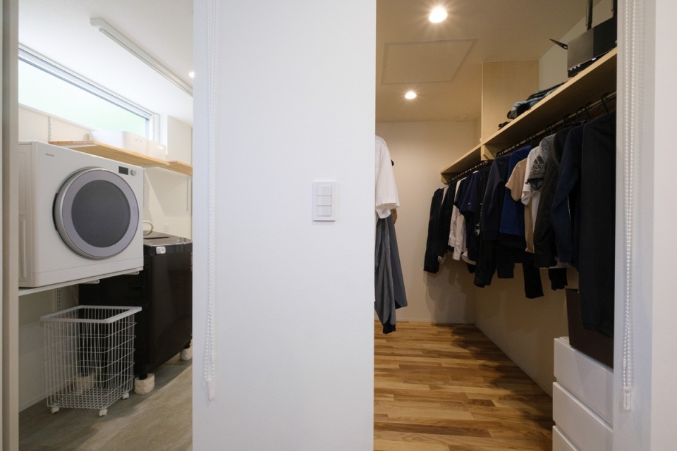 洗濯室の隣にファミリークローゼットを配したことで、家事効率は格段にアップ!