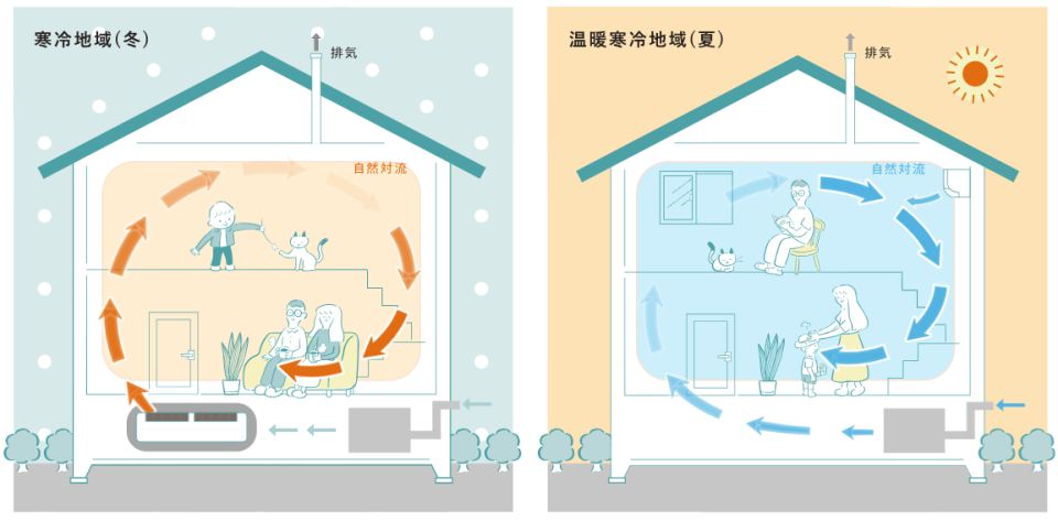 パッシブ換気の仕組み(生杉建設ホームページより)