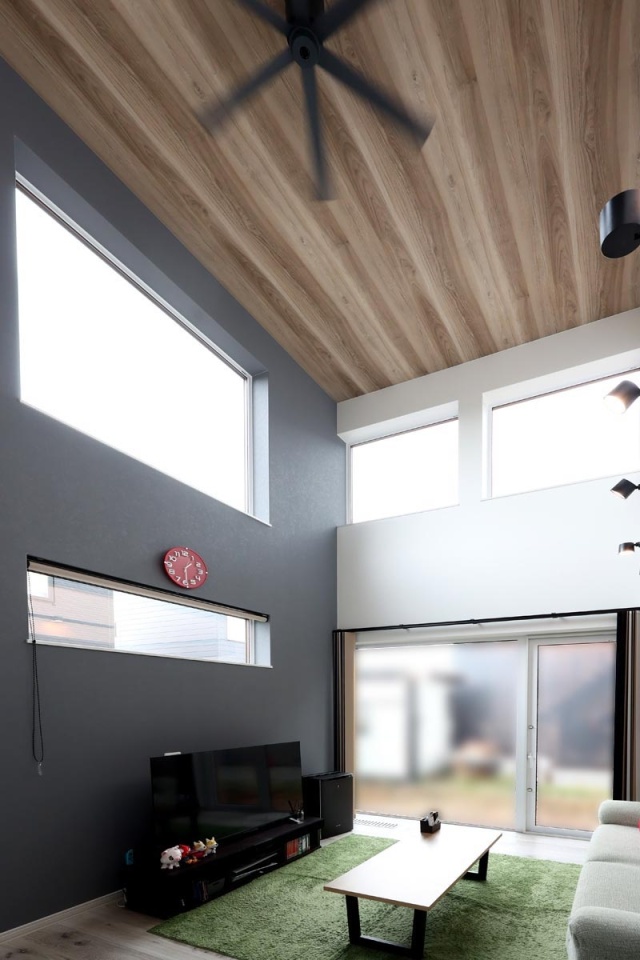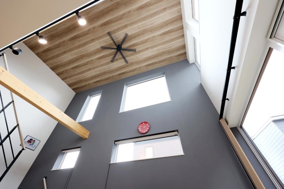 ふたりの勤務先まで5㎞ほどの距離という土地の条件と、夫婦の希望だった大きな開口部がある吹き抜けを実現できる在来工法の家であることが生杉建設にお願いする大きな決め手になりました。