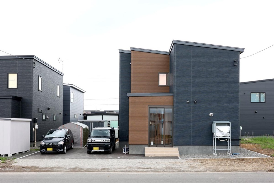 2024年の3月に結婚したKさん夫妻が新居を構えたのは、千歳市のニュータウン。敷地は広々とした道路に面し、200㎡以上の広さです。