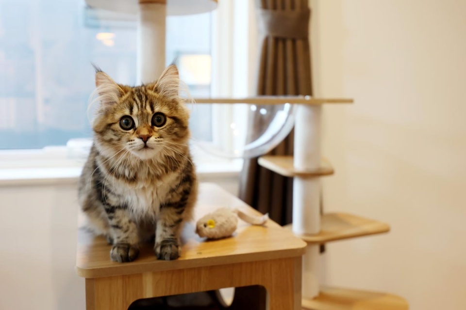サイベリアンのくーちゃんは生後4カ月。Kさん夫妻が大好きな甘えっ子ちゃん。入浴時にはお風呂場の前で待っているのだとか。