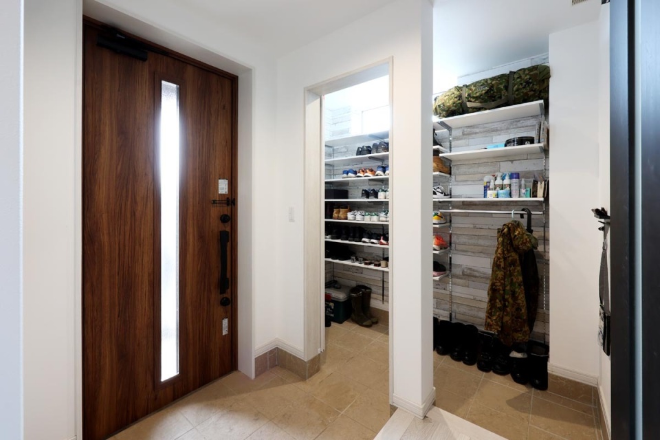 靴や大型の荷物が多い仕事柄、玄関横には3㎡以上のシュークローゼットを配置しました。