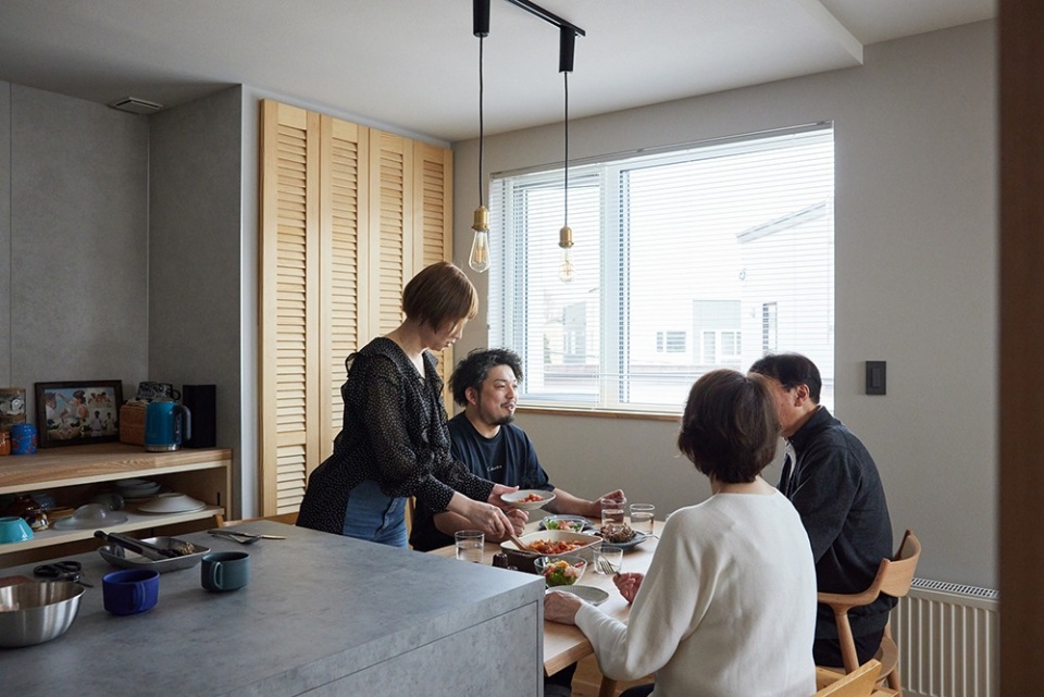 Hさん夫婦が1階のご両親に声をかけて、2階でともに食事を楽しむことも多いそう。奥さまは4人姉妹の長女で、「家族が集まる大切な実家を残したい」という思いももっていました。