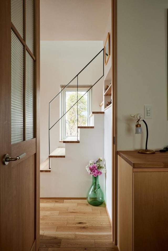 ご両親が住む1階は、もともとリビングにあった階段を玄関ホールに移したことで、LDKが広くなりました。独立型だったキッチンは、リビング・ダイニングに面する壁を取り払い、明るく開放的に。ひとつながりの空間になりました。