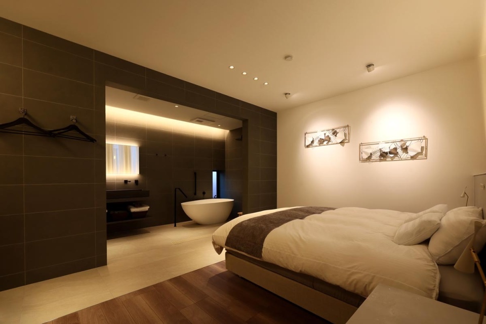 前室の先にあるベッドルーム。ラグジュアリーで洗練された空間です。