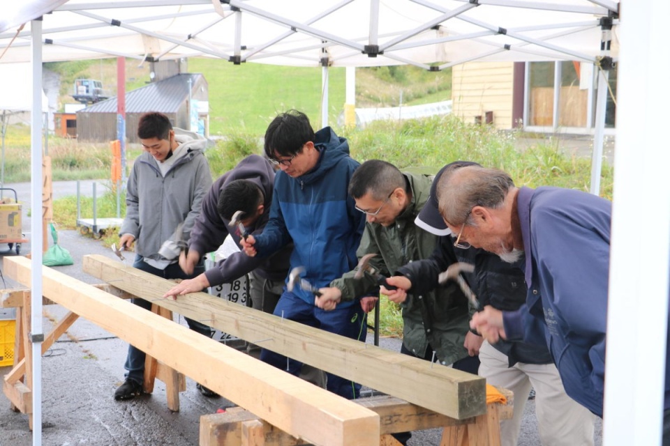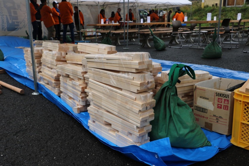 この日のために大工さんたちが4日かけて材料を準備しました。全部で100セットあります。