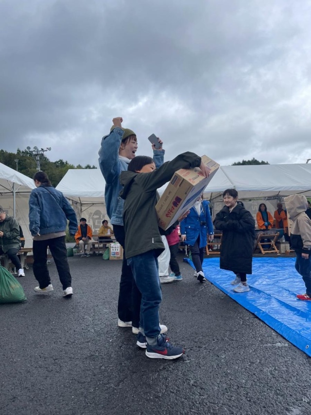 1等賞にはカップラーメン1箱が贈呈されます。ドラマチックな展開に、勝利の喜びもひとしおです。