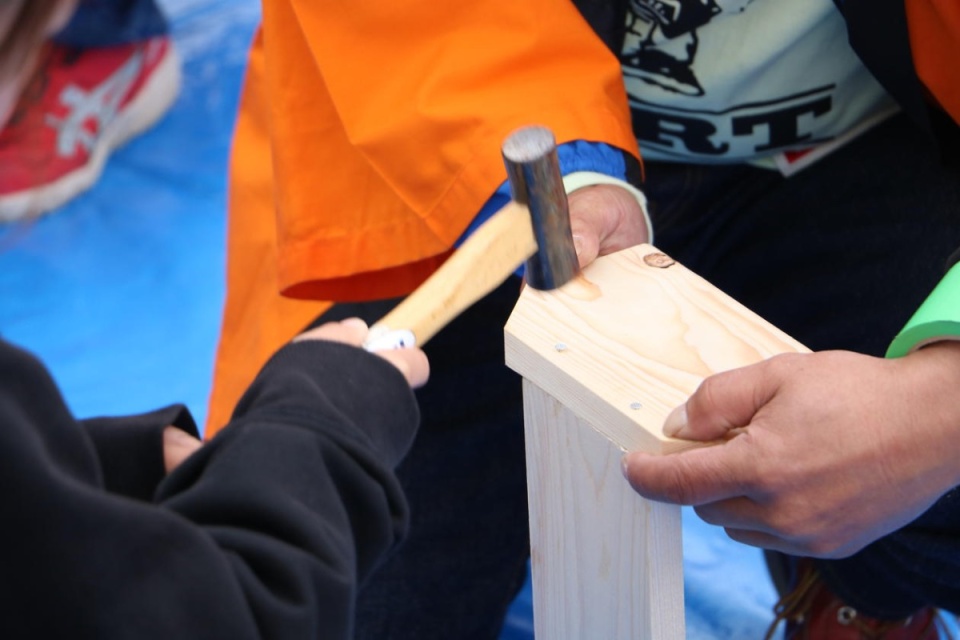 スタッフにサポートを受けながらの本格的な木工です。お子さんたちにとっても、良い体験になりますね。