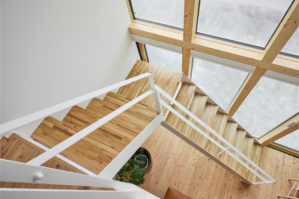 ノルド社の木製トリプルサッシは、屋内側に欧州アカマツ材、屋外側にアルミニウム材(粉体焼付塗装仕上げ)を使用したアルミクラッドタイプ。デザインの良さだけでなく、メンテナンス性にも優れています。