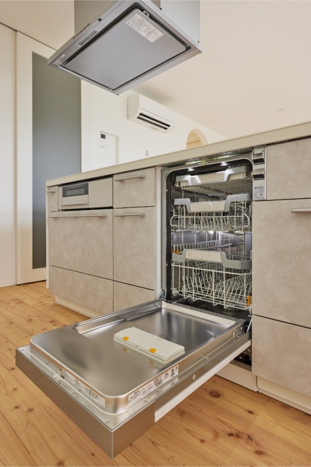 キッチンはLIXIL社のものを採用。熱や傷に強いセラミックのワークトップにIHの調理器具を合わせました。ドイツMiele(ミーレ)社の食洗器はフロントオープンタイプで、大きな鍋などを入れても余裕があります。