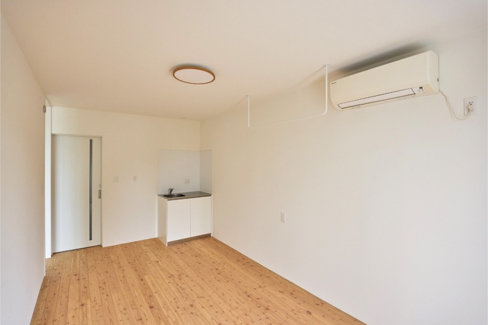 リビングの隣にあった和室は洋室に変更。LDKを通らずに洗面室・脱衣室・浴室・トイレにアクセスできる動線で、室内にはミニキッチンも設け、プライベートな時間を大切にできる造りになっています。