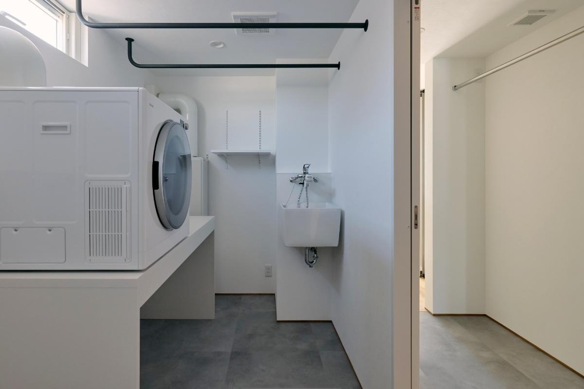 写真左/浴室・ランドリースペースの向かいにあるファミリークローゼット。この他にも動線に沿った造作収納が各所にあります。