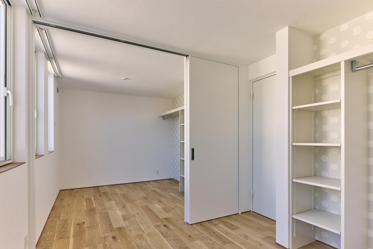 子ども部屋は仕切り戸で二部屋に分けられるスタイルに。お子さんの独立後はご夫婦の趣味の部屋や客間など、その時のライフスタイルに合わせた使い方ができる可変性の高いプランです。
