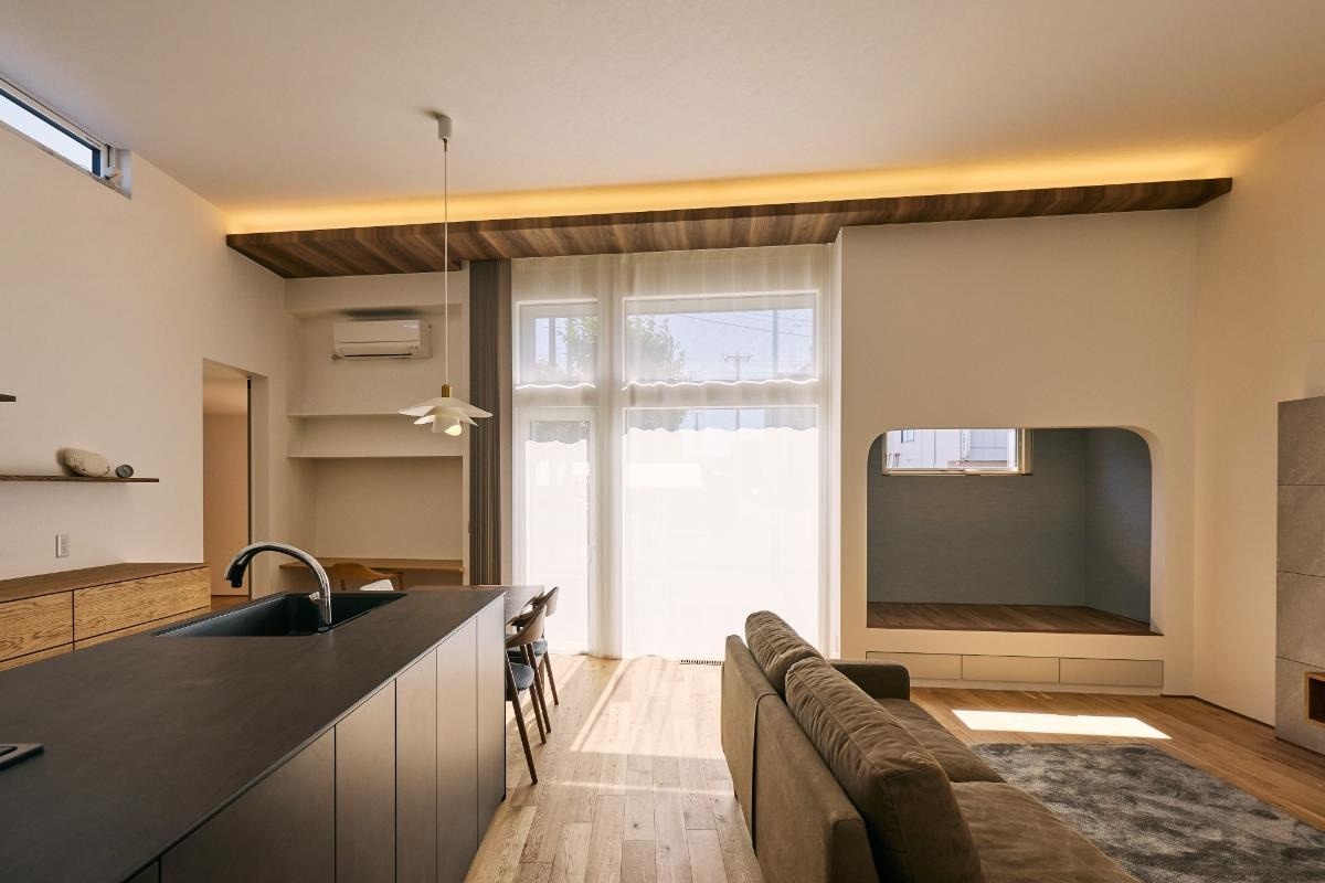 A 床下に温水を配管して床暖房にしています。空気を乾燥させることもなく、足元から温まるので快適です。暖房器具が見えないため、意匠性を損なうことがないのもポイントですね。断熱性能はUA値0.26とZEH水準を上回っており、真夏も真冬も心地よく過ごしていただけると思います。