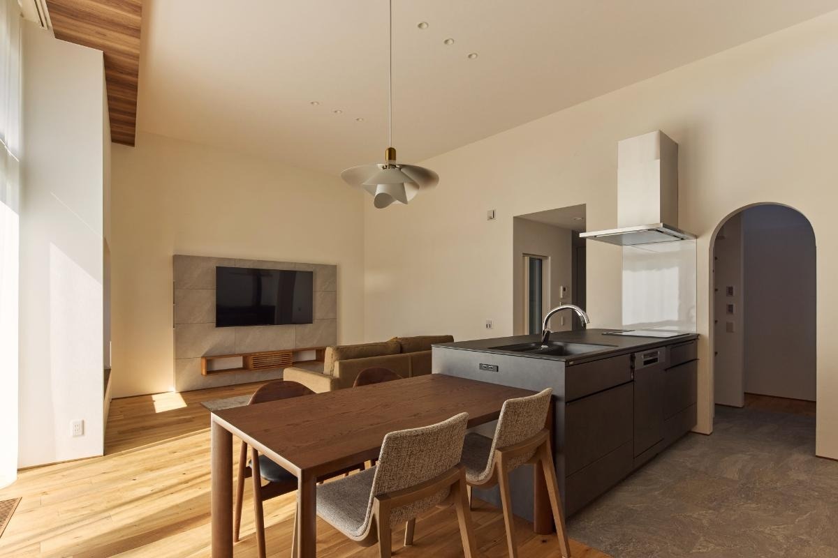 LDKの天井高は約3.3m。他の部屋より1mほど高く、部屋に入った時の開放感は抜群です。視覚面でもコストの面でもメリハリをつけた設計になっています。