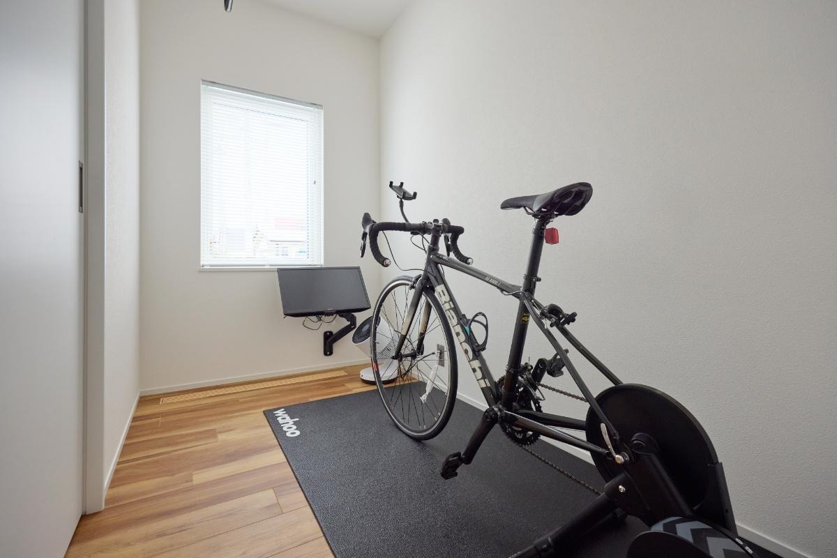 健康維持のため、仕事中は30分おきに席を立つようにしているというKさん。LDKの隣にはトレーニングと気分転換ができるフリースペースを設けました。来客時には客室として使用することも想定しています。