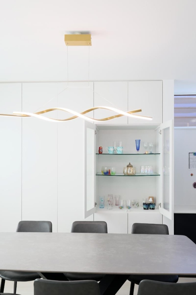 ダイニングのシーリングライトは、ご主人が見つけたお気に入り。この照明を軸に、室内全体のインテリアのイメージを膨らませ、リビングの照明もテイストを合わせました。