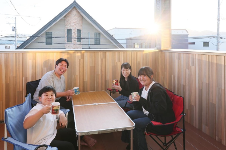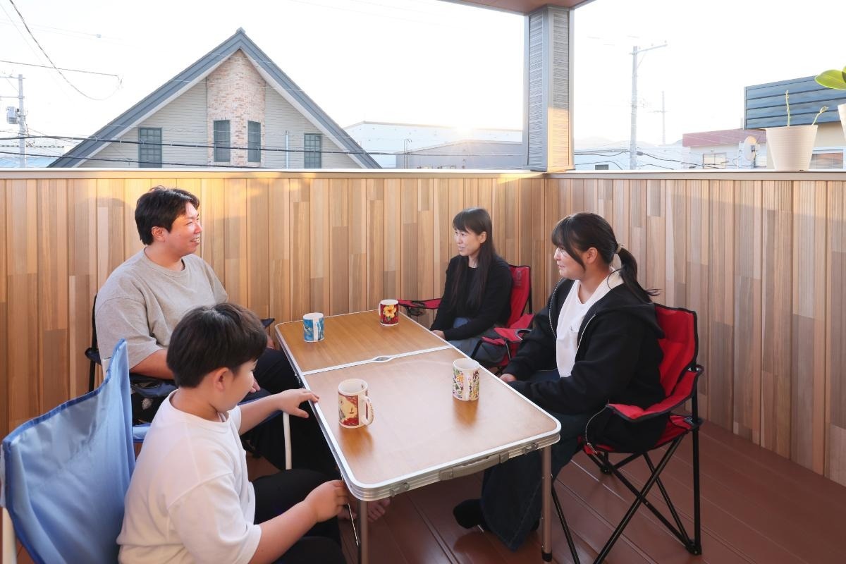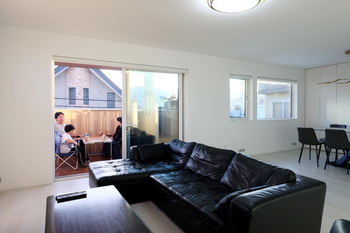 バルコニーは休日になると大活躍で、親戚が集まって焼肉パーティーをすることも!室内に臭いがこもらない、奥さま念願のスペースです。