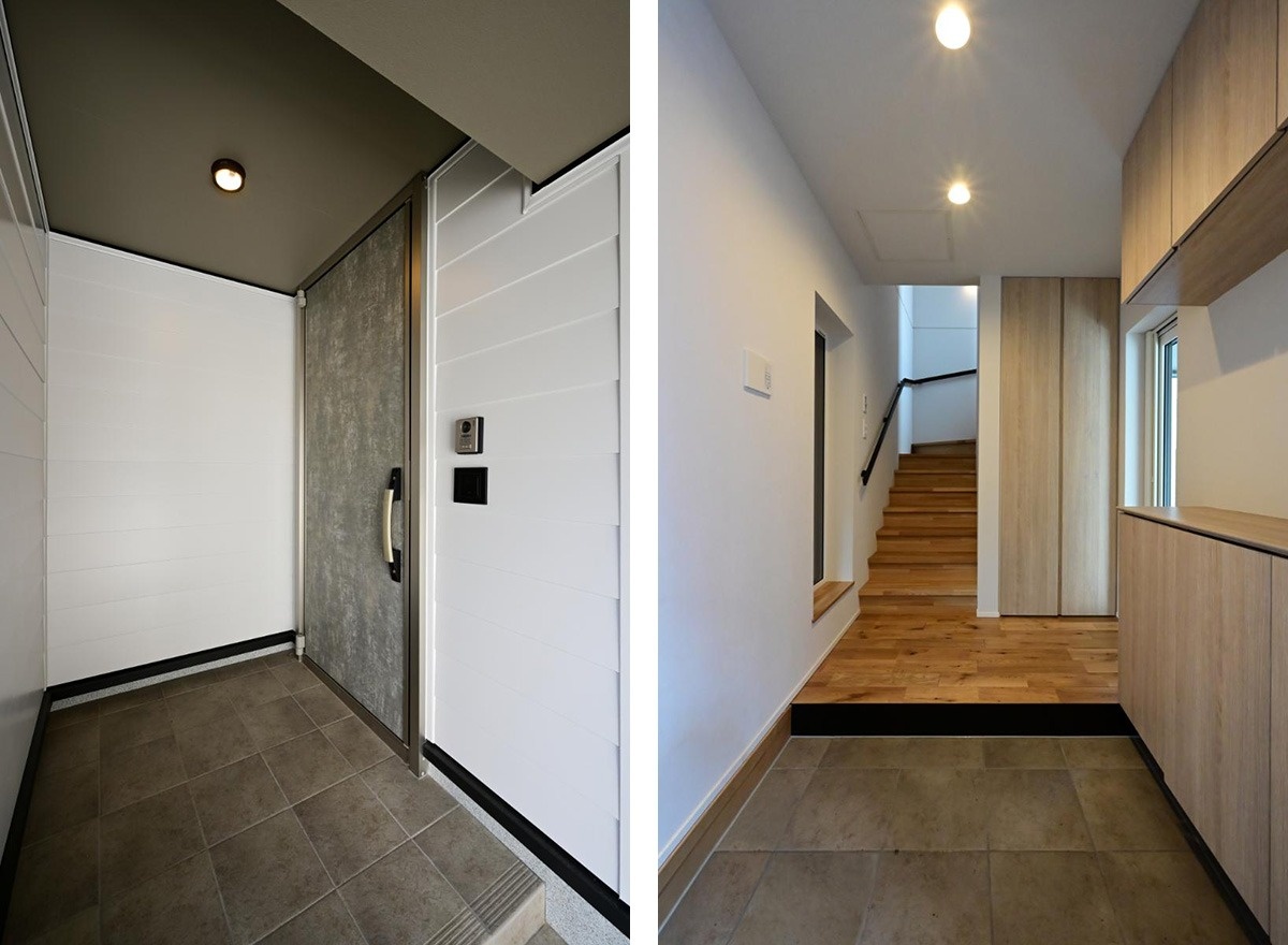 玄関ホールにはカーポートに出られる勝手口があり、買い出し後の荷物の運び入れなどにも便利です。
