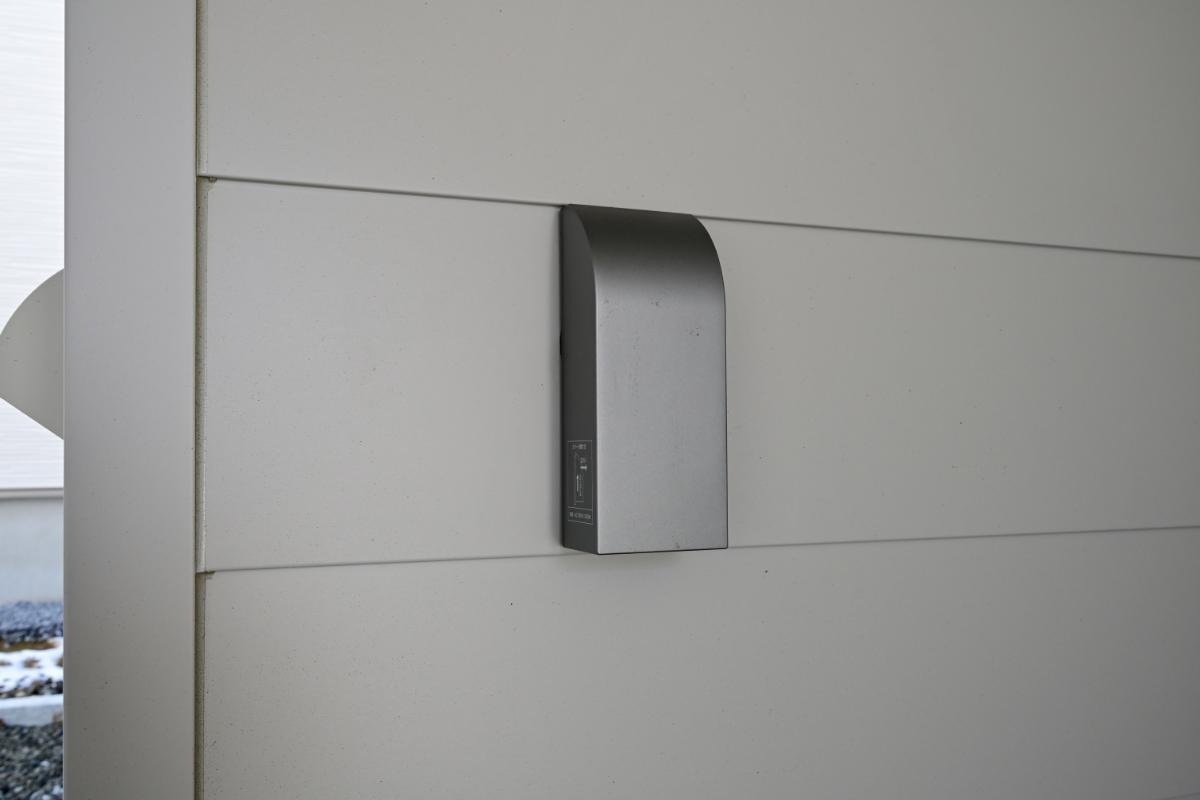 カーポートには電気自動車やポータブル蓄電池などから電気を供給できる「スマートエルラインライト」を設置。